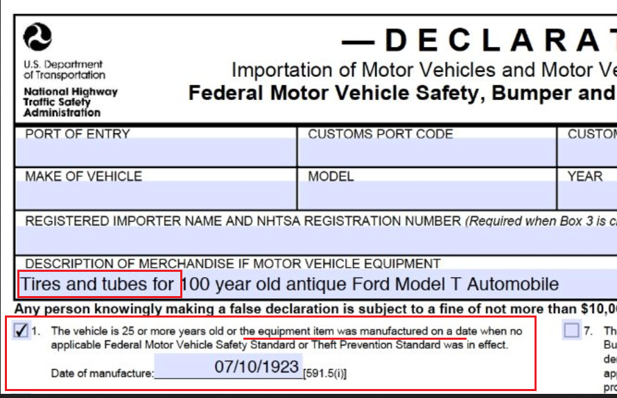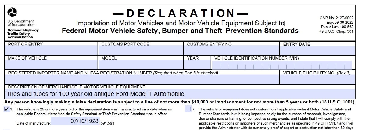 He didn't come out and say they forgot to send it with the tires but I would suggest anytime you order from overseas you should ask if they've included a HS-7 form. I have a copy of one that can be filled in online if anyone wants it.