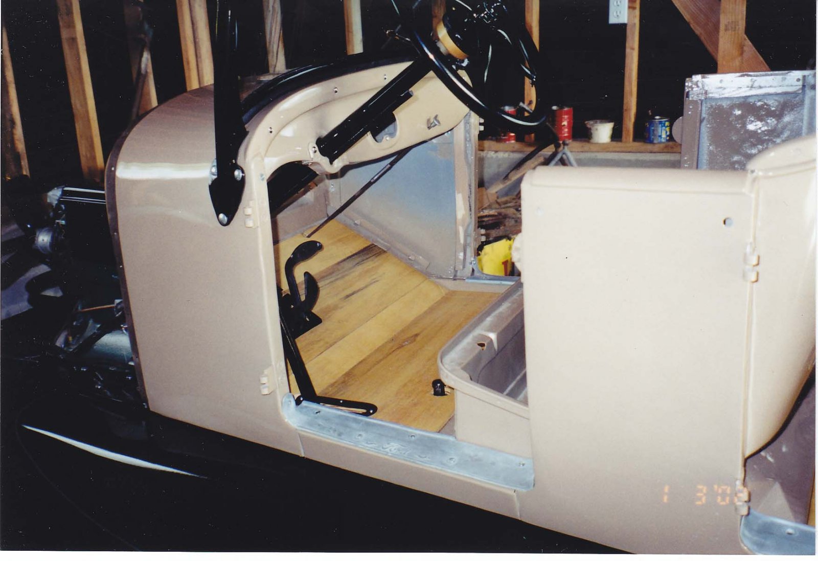 You can see the holes drilled for the windshield posts and also the windshield posts bolted on. The only bracket inside is the one under the steering column. That bracket over the steering column on your car is from some other model.