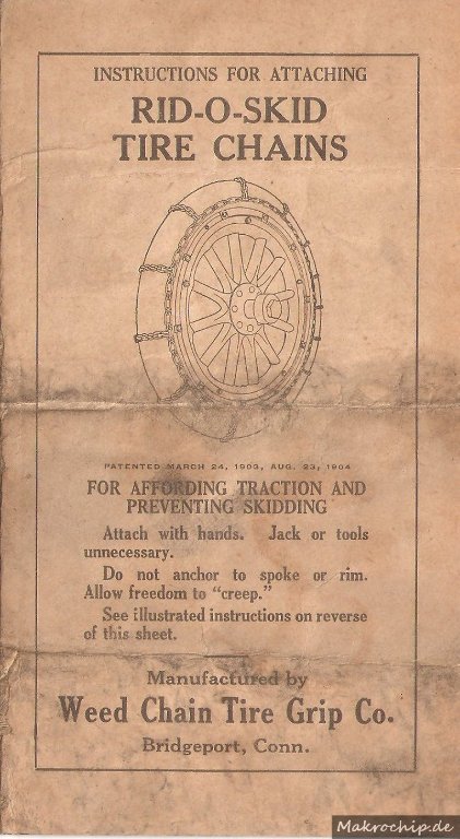 I used to have an original set of "Rid-O-Skid" 30x3.5 tire chains in the original burlap bag, but I sent them to Strong's Garage in Canada (check out their Youtube channel).