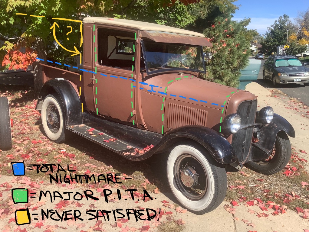I’d get the radiator and hood in the mix like the others suggested and see where that puts the body. One would think that those frame to cowl brackets would be the jump off, but the cowls sheet metal may tear if you do those first then tweak the body around them. If they are the pieces that came off the car, we can sure see how much the metal body flexes and shifts with use and time. Have you had the doors back in? Could be informative… Chris, in Boulder