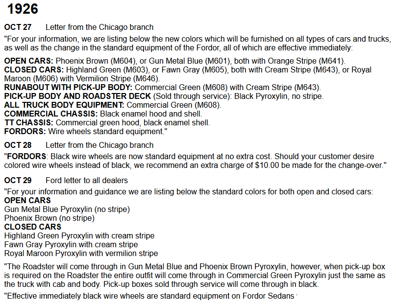 In the first pamphlet "Choice" is likely to mean instead of the standard color. Yes there were noted color changes per the MTFCA Encyclopedia