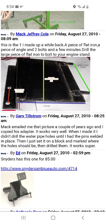 Steve, would you be so kind as to tell us where you found a drawing for the adapter? I need to make one too. Thank you.Steve King wrote: ↑Tue Mar 14, 2023 4:47 pmThanks MTFCA for the drawing with dimensions for the block adapter engine stand mounting plate which I built this morning as vendors are out again.