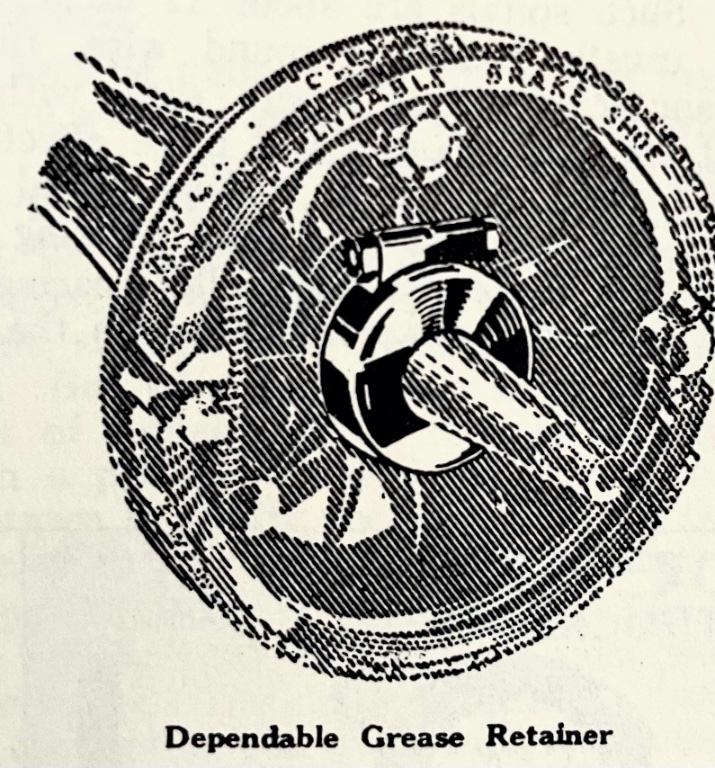 That is an in the day retainer to keep grease off the rear brake shoes, mfg. by Dependable, they also made steel asbestos lined emergency brakes shoes.