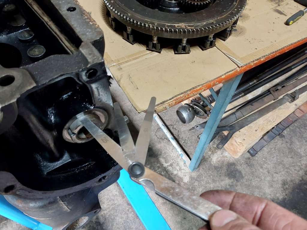 I think that right now .004" (.10mm) shim stock is your friend. Wrap the bearing, install, capture with securing bolt.
