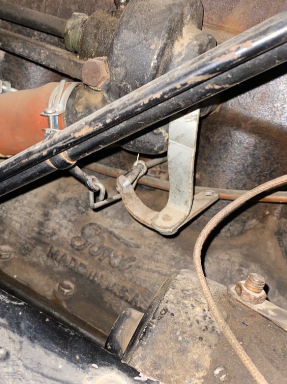 Im wondering what the correct carburetor throttle rod is for my 1927 Model TT truck. Ive attached a few pics of what is there now however it doesnt seem to move properly from the steering position so i would like to get the correct one. The one thats on there has a large curve in it where it goes around the water pump and also how it attaches to the steering column rod seems wrong. Im not sure if the throttle lever arm should attach with the pin or the bolt-on type as pictured but not used.
