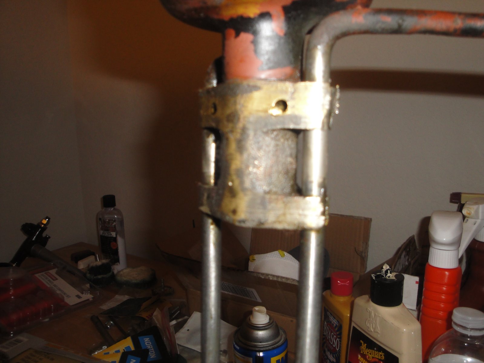 This is a very interesting topic. I was able to do mine a long time ago very carefully. I honestly don't remember what I did any more, but I must have used heat as mentioned above. After I got the rods removed I had it nickel plated by a very reputable plating company. It never gets dull. I just wipe it down with a soft cotton rag. Another thing that is very important to me is the rivets. I used new rivets and shaped the heads to match the originals. It's easier if two people do the job.