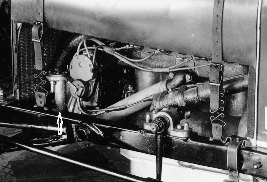 I also have an original T racing car with a SR Fronty racing engine with a counter-balanced crankshaft with 1.625" main and rod journals and quite a bit of engine set back and room for a crank-driven blower. Have thought it would be a very interesting project to set up vintage roots type blower or a Judson off of the front of the crankshaft in the same manner as the Green Engineering special powered by Green supercharger in the photo below. Mounting one out in front of the radiator would allow it to be air cooled. Vintage Bentley's were also equipped with a front-mounted blower.