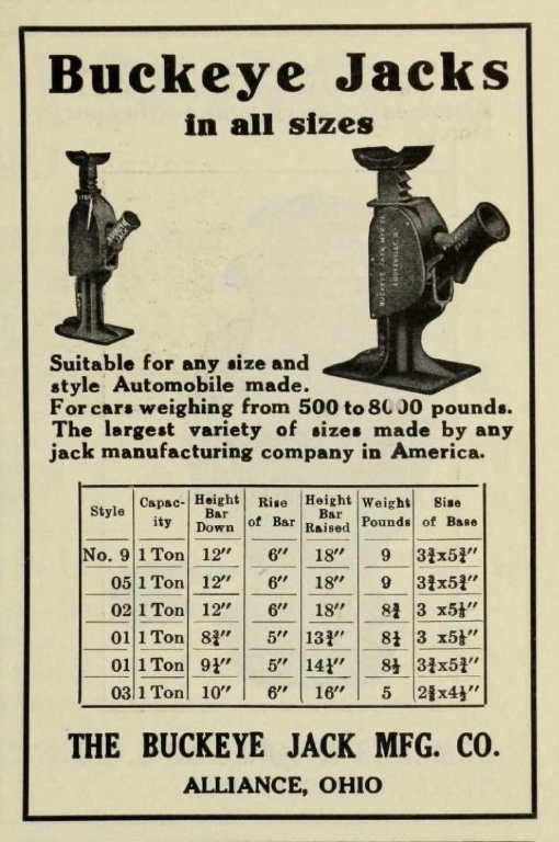 1911 Ford time’s magazines have a few adds for the Buckeye jack company. They state their No. 3 jack is especially designed for Ford cars. I have one early Buckeye jack that is number 3, but it was made is Louisville, Ohio. Buckeye moved to Alliance, Ohio in the beginning of 1910. It seems all the jacks made in Alliance with the Ford name are the model No 00, not the No 3 as there add states. Anybody have a Buckeye Alliance No 3 Ford jack?