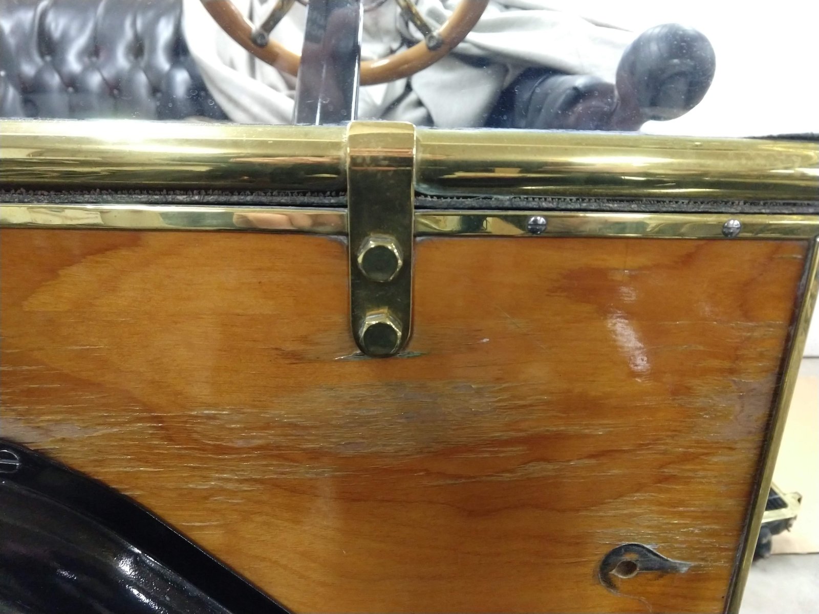 here is a close up the brass trim is original as are the brackets Cheers Colin