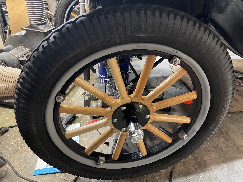 I had a busy winter working on the 22 runabout PU. I moved the body back 3/4 of an inch to the correct location, put new bearings in the front end, new seals an outer bearings in the rear end, along with rebuilding the parking brakes, made brake/running light mounts and installed the lights and brake light switch, installed the engine pans and carb heater, installed a battery horn, installed 5-1 steering guts and rebushed the lower steering bracket, installed Apco steering ends, a new steering arm, and tie rod ball, made a mount for my klaxon horn that goes on the spare tire mount, installed an exhaust whistle and cutout, rebuilt the wheels with matching Kelsey removable clip felloes and rims, installed a speedo drive gear, ordered 2 new tires to make a matching set (in transit), installed a sliding adjuster on my Rocky Mountain brakes, made a fat lady brace, made a new starter cable, repaired the battery bracket, painted the head and exhaust manifold, replaced the freeze plugs, replaced the pins in the hood, made new floorboards and a panel under the seat, installed a steering column brace, and bought all the parts to install a speedometer. The cable and a new head are on order and will go on when they come in.