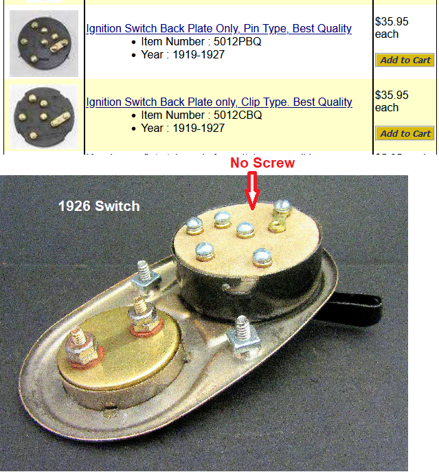 This diagram includes an extra screw backing plate and as you can see nothing is connected to it for a Model T. Companies that made switches may have made one that worked on a Model T and some other car. The key rotates the inner ring to select the voltage source MAG or BAT on a MODEL T. The extra screw position would also make contact when the key was rotated, don't have an answer for its function.