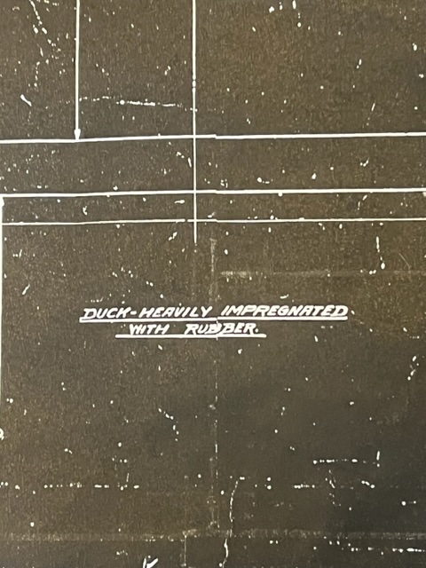Hear some pictures of an original 1910 floor mat. It’s clearly made with duck as the blueprint says. It’s with dark gray or black in color at this point in time. Hard to say what the original color was, but I don’t believe it was anything close to white!