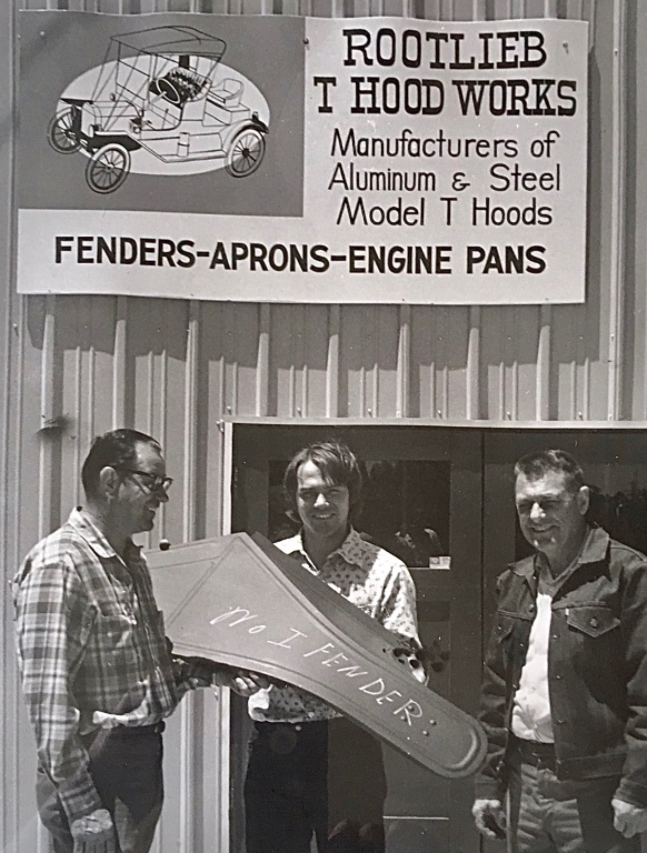This is a picture of my father, Henry Rootlieb, myself and Howard Cassia. My father purchased the business from Howard in May 1973. Howard came and worked with us for 2 weeks and got Don Wedin and myself up to speed on making Model T sheet metal parts. My father and mother (Lois) ran the business till 1987, expanding the product line greatly during their stewardship. Then they retired and I took over the helm. Dad passed in 1990 and mom in 2001. I retired in 2013 and since then it has been run by Rod Wood and Michelle Vierra. We all want to offer our gratitude to all the many customers who have believed in our products over the years as we celebrate 50yrs. in business. Thank you so very very much.