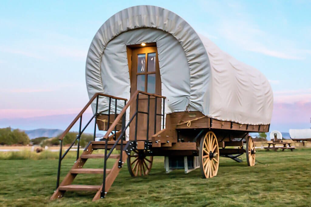 I don't know about Conestoga wagons, but it's popular to rent out sheep-camps. (and you don't even have to herd sheep)