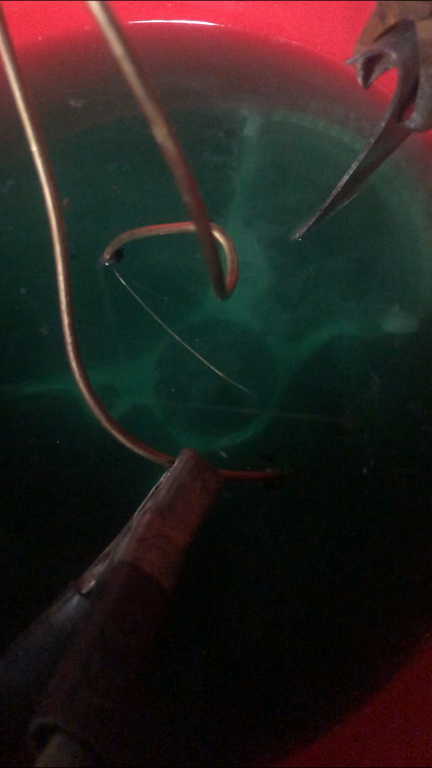 Lookin good Corey! This is my setup from a while back using the same vinegar based solution. I made up copper and nickel with hopes of plating carburetor parts… but turns out my 1A power source only has the oats to plate small coin sized parts. I’ll have to step up my power and try again…