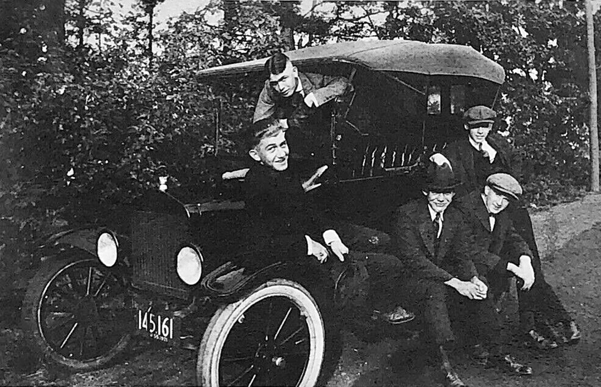 The Packard over the edge after possibly hitting the early T with accessory cowl is interesting. We talked about those cowls here: