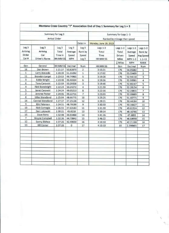 Here is Day one, Leg-1, Leg-2, Leg-3, & Leg1>3 Summary Sorted.
