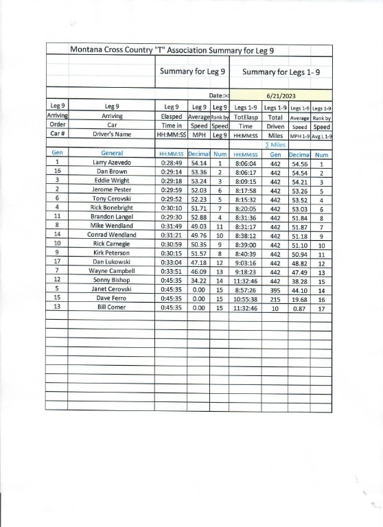 Here are Day 3 results, Leg 8, Leg-9, and Legs 1-9 Summary and final standings.