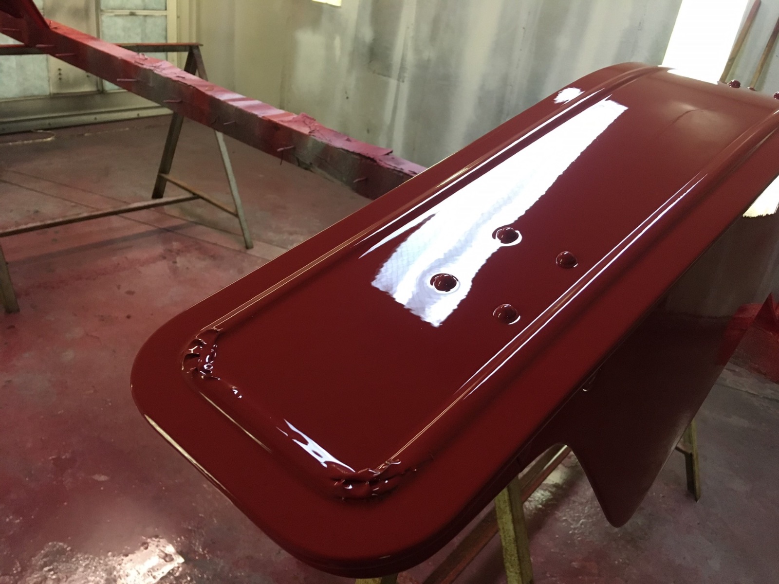 John, I’ll get to your question later. Not a lot of progress due to working with the guys making running boards and so little time to paint in the morning. Doors ready to go red (just finished).