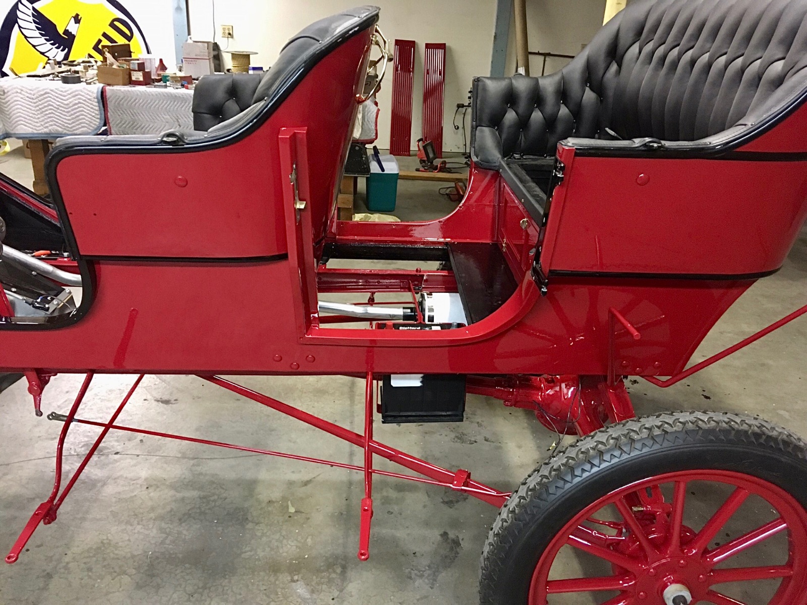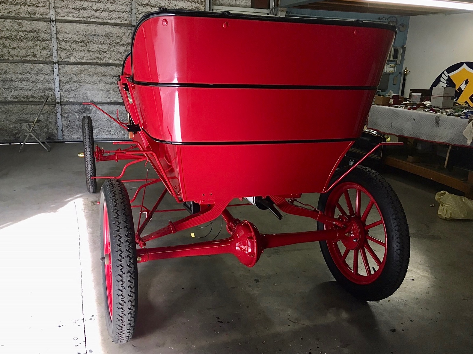 Back when I was a teenager, my father belonged to the Seattle Model T Club. One of the members just finishing a 1914 touring. He worked in a small old wooden 1 car model t garage with big small pane windows in the end wall.