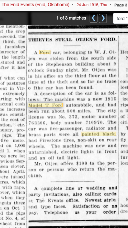 Stolen car notices describing Fords owned by doctors, salesmen, etc. often mention the brass painted black. It may be that a lot of the black-painted over brass Fords were owned by ordinary people who simply wanted to update their car.