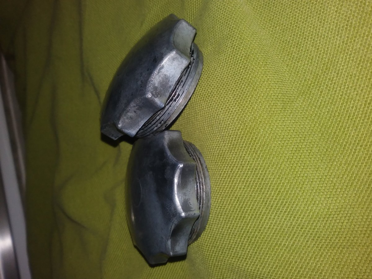 I've never seen this style of cap before. The black paint was all but gone so I cleaned them up...made from Pot Metal.