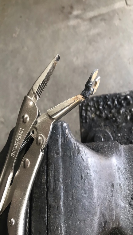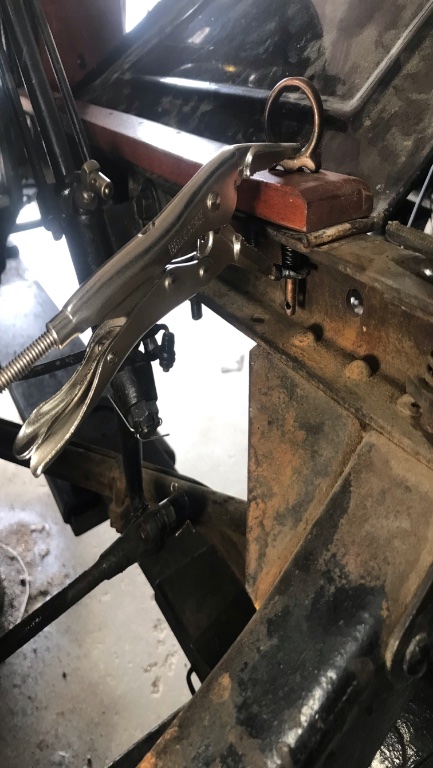 We are putting a 1913 back together after clutch replacement. Facing the dreaded hood latch installation, my friend Michael had an idea for a tool to assist, and a great one it was! He made it out of a $10 pair of Harbor Freight vise grips and a flat washer. About five minutes later, all the latches were in. Even the one right next to the carburetor was a breeze. I did the rear ones from underneath.