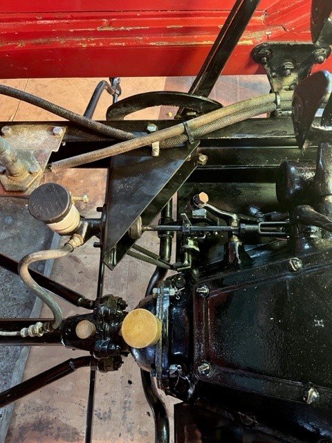 I've seen a couple of these semi modern types of hydraulic brake systems for Model T. I think I understand why your friend wasn't impressed with their performance. For some unknown reason, folks seem to think that the T's braking system is flawed (the joke being, step on the brake pedal and the car responds with "I'll take that under advisement"), because of that small drum on the earlier cars (wasn't any better on the later ones either). But for the times they were originally designed for use in, they worked fine (25 to 30 mph), and would stop on a dime if you were moving less than 20 mph. Yes they were slow to stop, but then all the cars on the road at that time were also, so it was relatively the same stopping power as everybody else on the road with yours, per weight of whatever vehicle it was, because the brake systems were pretty much the same (no matter how they were energized)....drum and shoe. Which is why your friend didn't like them much....they can't stop a Model T on a dime (or a 200 dollar string of 20 dollar bills laid end to end either for that matter in modern traffic conditions). What would happen as you pressed down on the brake pedal (say in panic mode for instance...been there done that on PCH 1 no less), you'd lock up the rear wheels and once that happens you've no control at all! There is no controlling any car if the wheels are locked up! You'll go into an uncontrolled skid (and who know what or whom you'd hit along the way of such a skid)...Soo, what to do, well, you'd need to devise an anti locking brake system for your T, but even then there is no guarantee that your stopping power would be the same as a modern cars. The only thing I can think of that might make some difference, would be a 4 wheel system (like all the modern cars have...sort of). Doesn't have to be hydraulic, it can be totally mechanical and still work quite well.