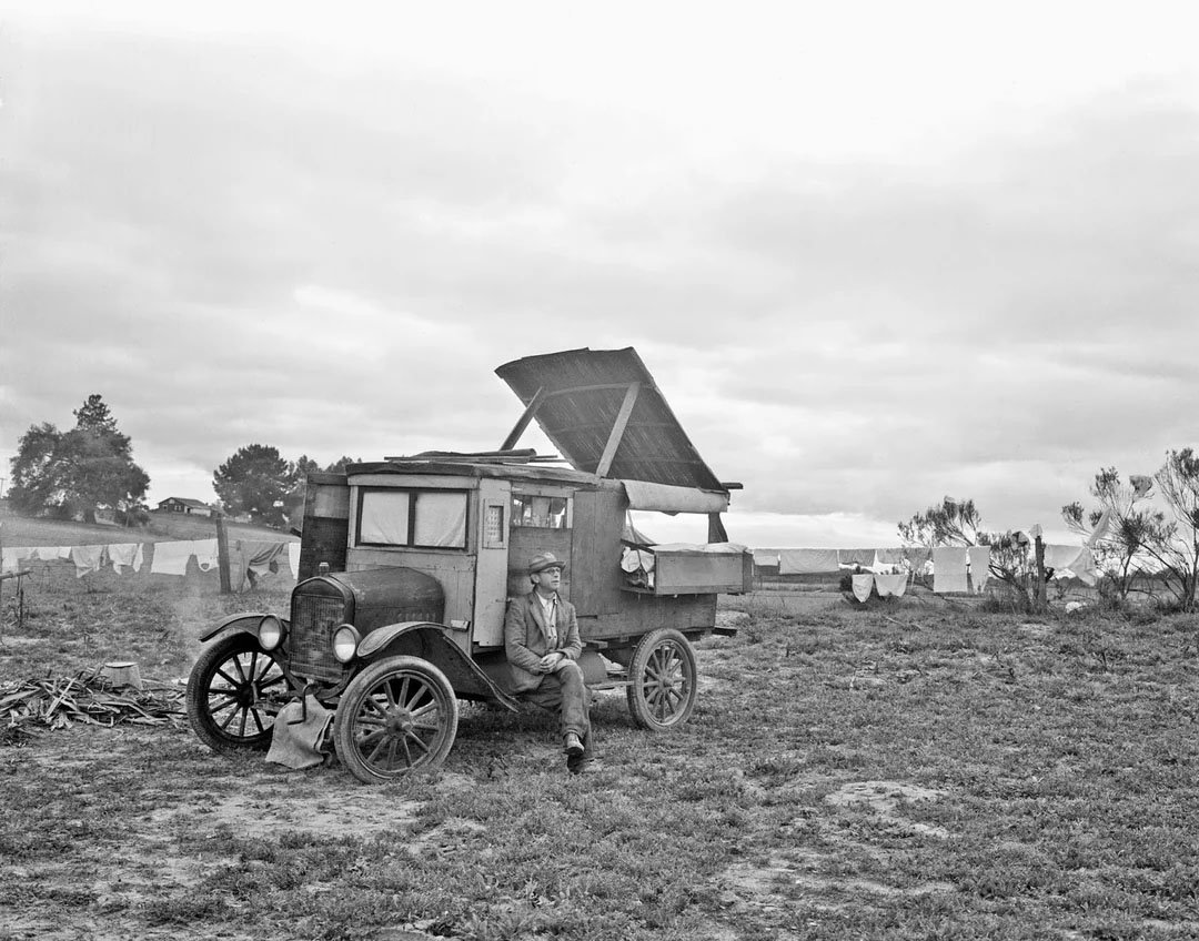 It's another by Dorothea Lange. "Members of the roving army of fruit pickers". "The man is quoted as saying he picked peas from the Imperial Valley of Southern California to the northern Ukiah Valley of Mendocino Country."