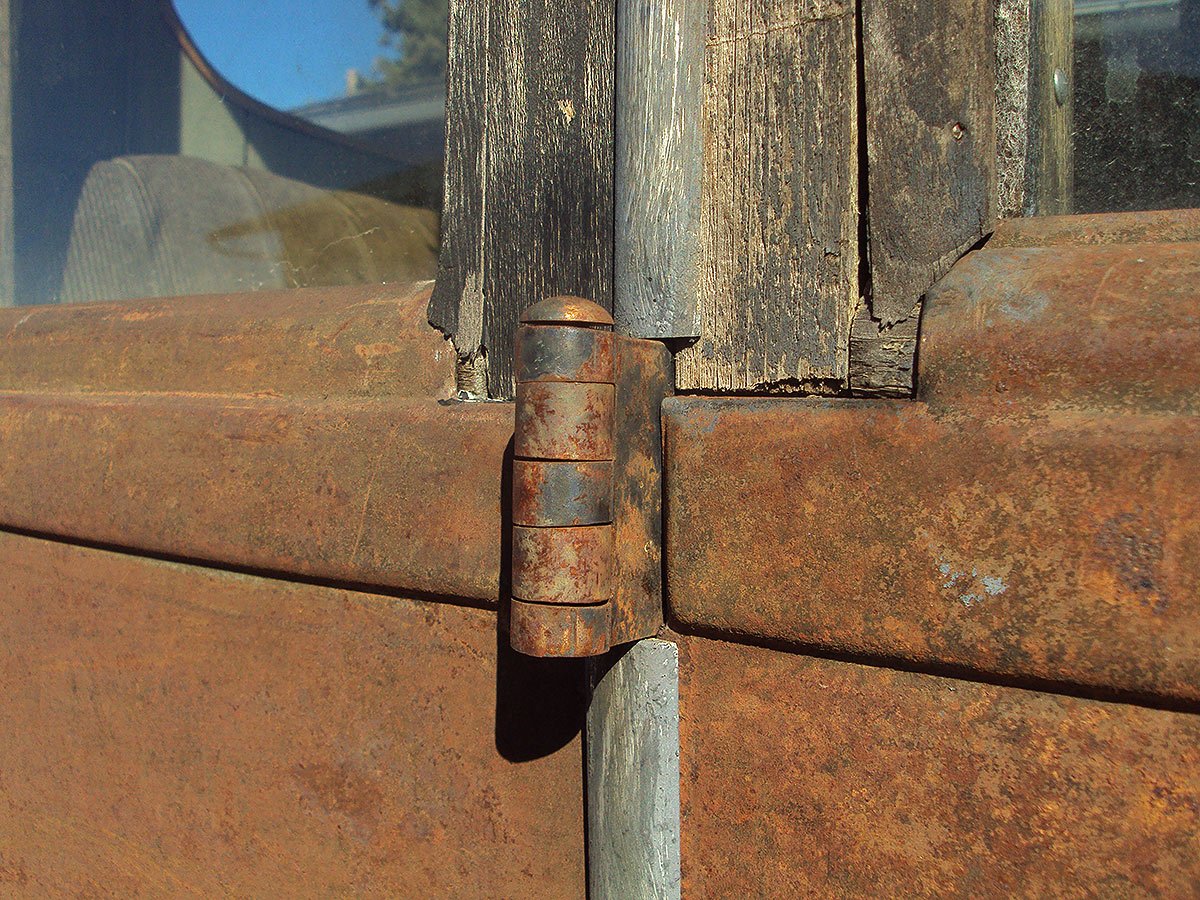 This one is of my precarious Coupe body waiting to be lowered onto the chassis. I was choosing the appropriate nuts and bolts for the spare tire carrier. These old bodies have a lot of character.