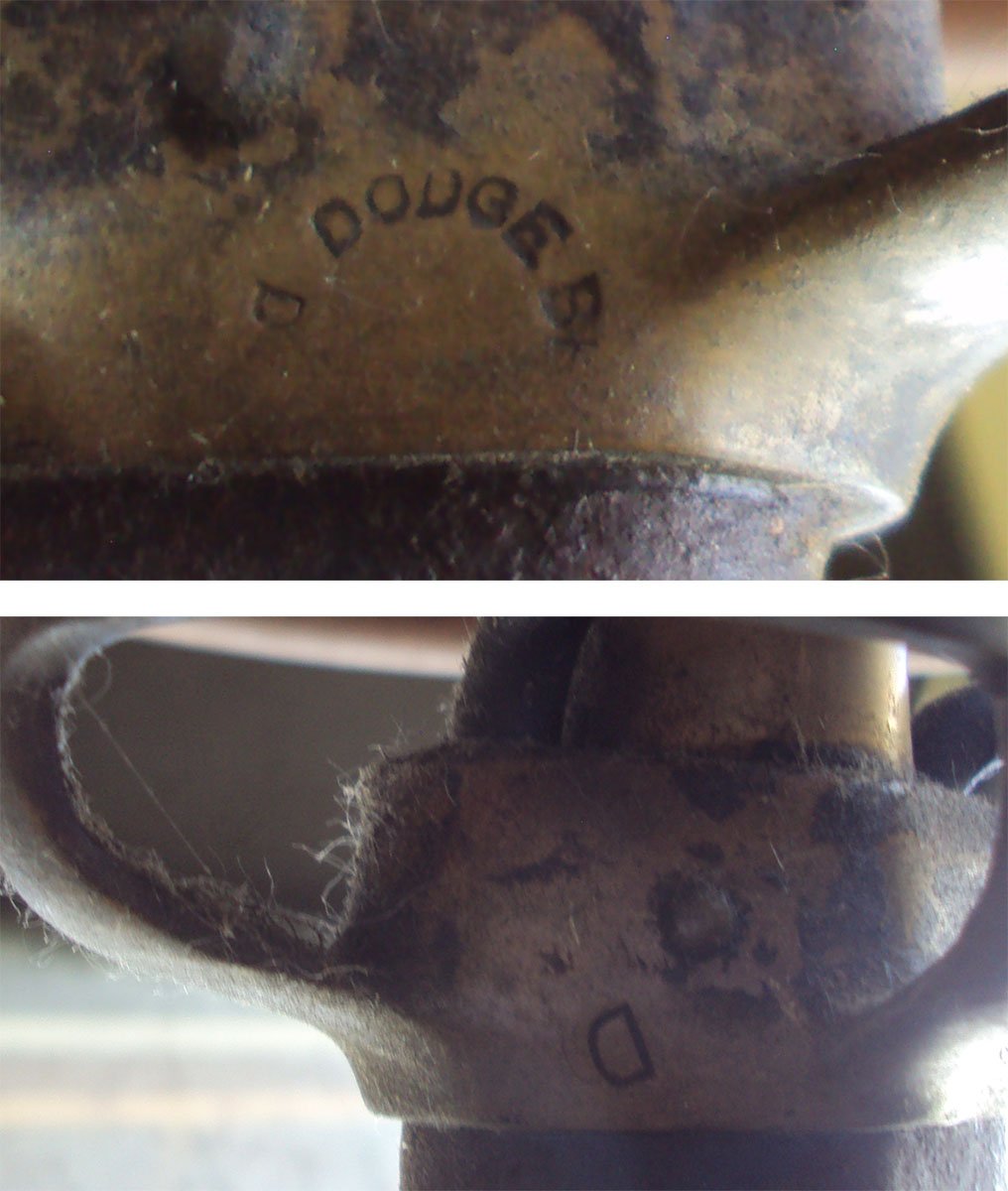 What a fun subject. I too thought I should go out and look at mine. As often happens, it raised some questions. I have the other side of the stamp on these three. The first has both the D and the circular Dodge Bros Detroit.