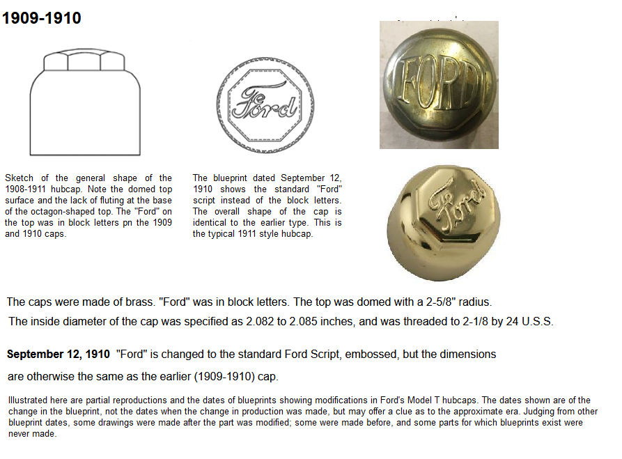 I have had two 1917 High F scripts hubcaps. The first one I had I gave to Russ Furstnow when he bought my 17 Coupelet. The script was identical to the 1916's used previously, and first introduced in 1914. The one I gave Russ had no plating in the script area, indicating the plating was done after the black center. The one I have now has two areas that are still shiny nickel. No nickel in the center area as the other. I've not seen any 1918's to see if they still used the high F then. It would be nice to know. As some of you may know, the 1913 hubcaps are similar, but have a bolder F, as the one Dan Hatch posted this morning on the forum.