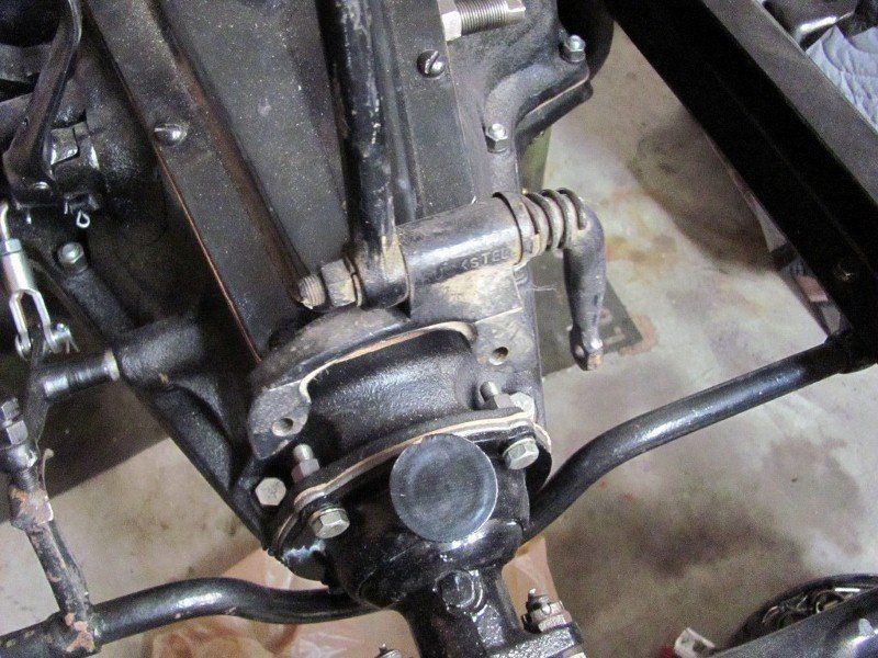 Another was designed for the TT truck. The rod is on the driver side and goes straight back to the shift lock. This is possible because the TT truck battery is up front by the running board. On both of these designs, the bracket is bolted onto the front side of the flange of the 4th main bearing
