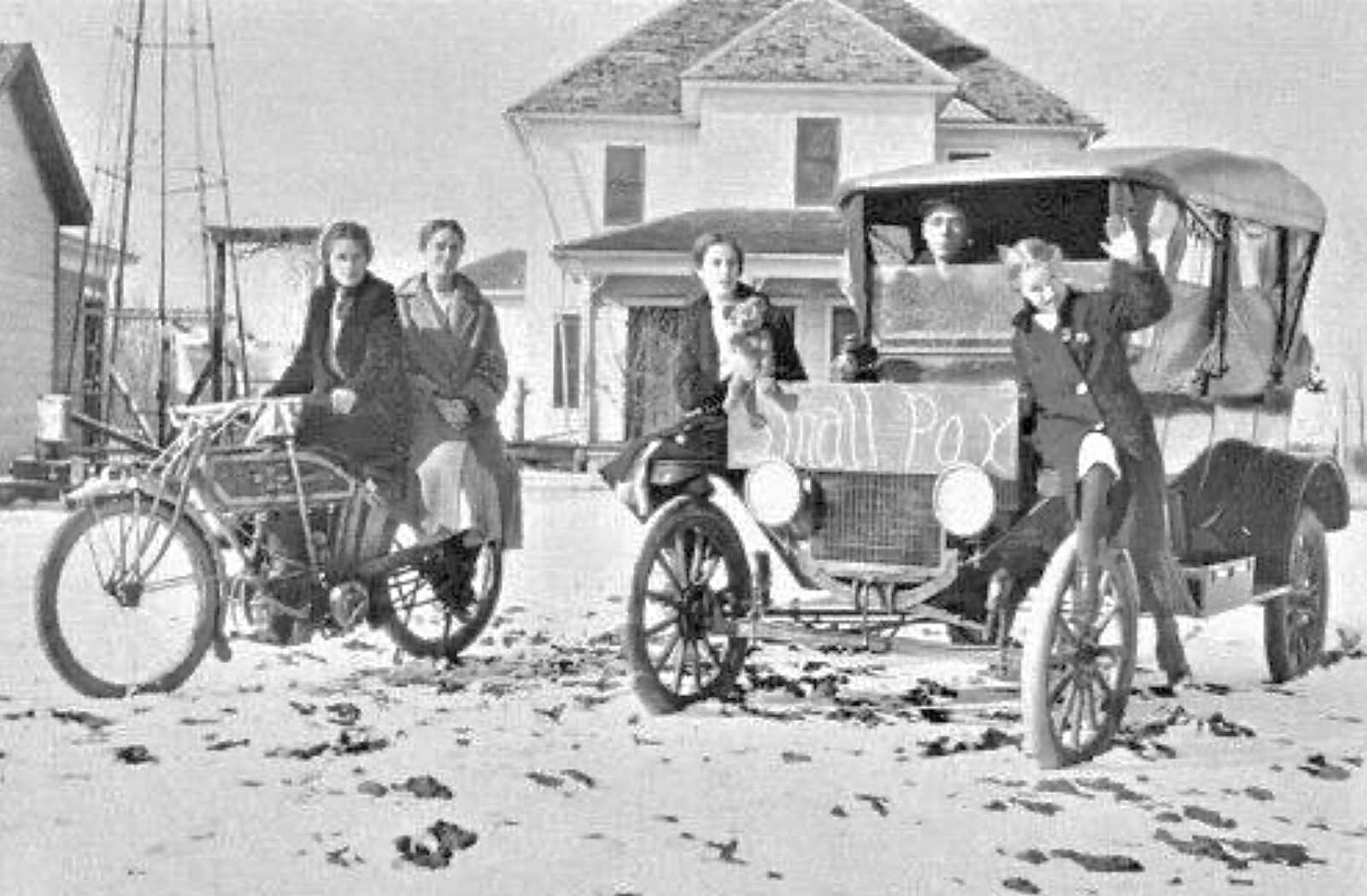 I wonder why the "Small Pox" warning sign on the car? Was it some sort of joke? I have before seen or heard of people doing that for odd reasons. Frankly it is not something to be joked about. Or, perhaps they had a local scare and were temporarily quarantined by their doctor out of fear that they might have been exposed to it. There were several localized smallpox scares during the 1910s. They were relatively minor, and largely forgotten today with all the overshadowing by the "Great War" and the flu pandemic that decade. Remember that the digging of the Panama Canal was still recent memory at that time, and workers on that canal were literally plagued by smallpox leading to the discovery that mosquitoes spread the disease and efforts to eradicate mosquitoes in the Panama area.