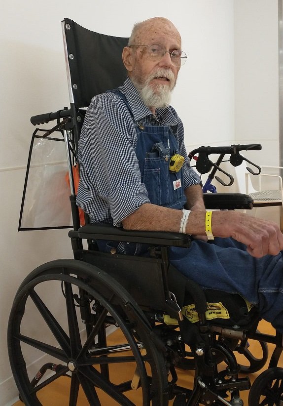 Then PT told me to join them when he went to PT this afternoon. I watched him walk all the way around the room with a new walker, and then she had him walk all the way down to the other end twice with the old walker. He likes the old one best. By now he was pretty tired and due for a nap, so I headed home.