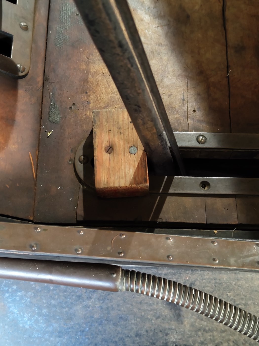 As requested, pics of safety device. Not patented, feel free to copy but ,please, no varnished mahogany and polished brass trim, this is shade-tree engineering for a T, just scrap wood and mismatched nails