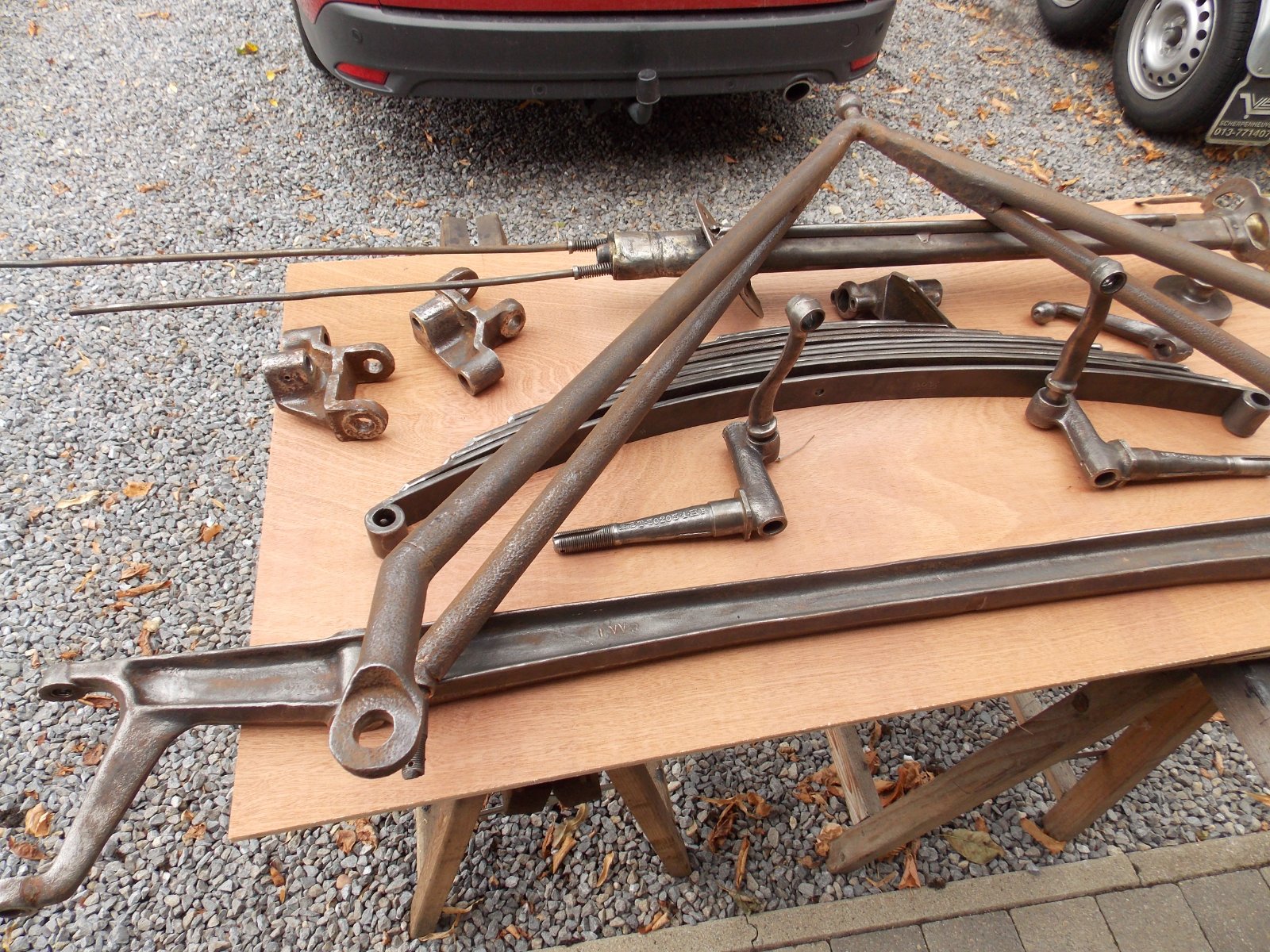 The rusty front spring mod shown allows a longer spring, which would improve ride. Hardware would have to be high quality and kept tight. Forged steel parts are very strong, and they could be hand-filed to give a good tight fit on the axle.
