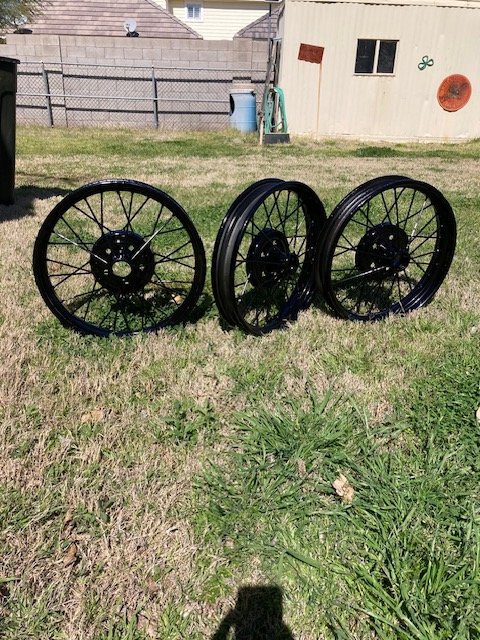 I prefer powder coating for wire wheels especially if they are rusty or the existing is not real good. Sanding spokes can get old fast.