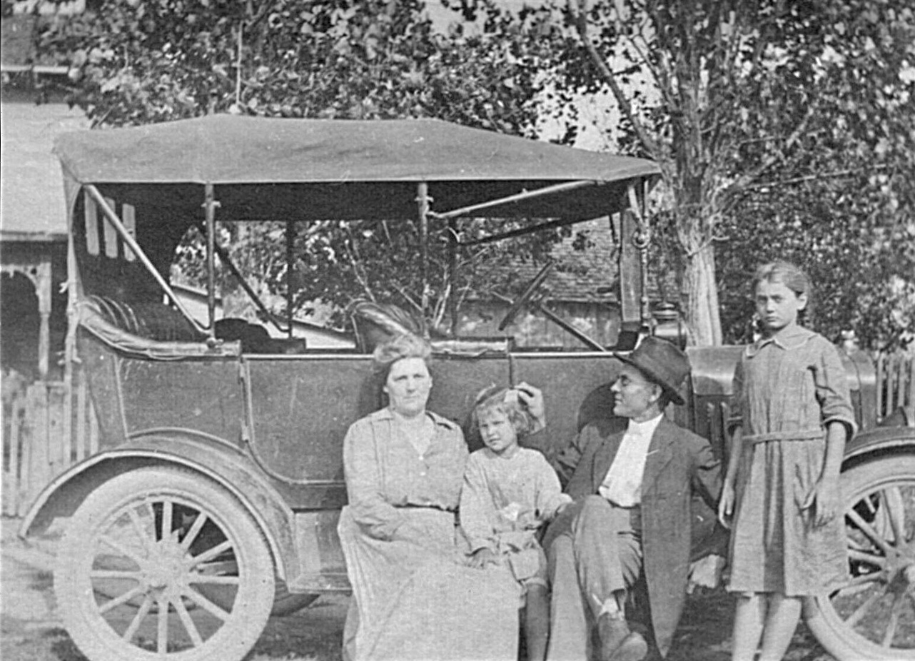 Car in the background indicates the photo is from the 50s.