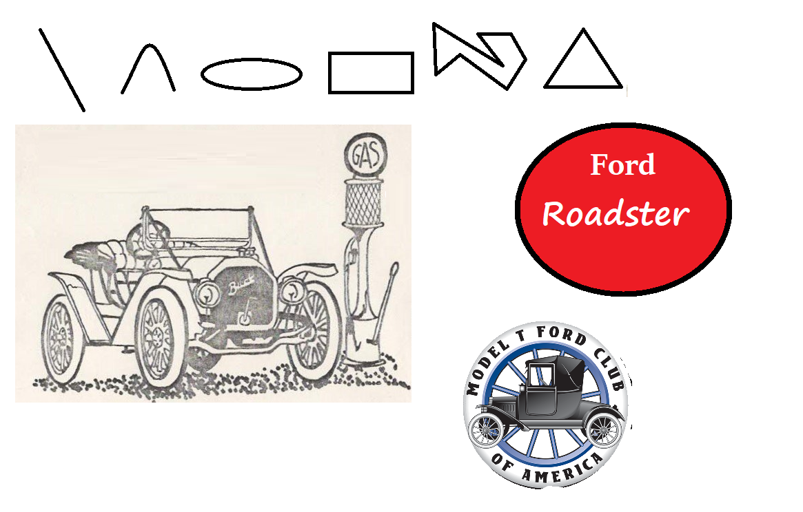 I have a question for those out there who like to design dash plaques, club logos, letterheads, etc. About 20 years ago, the company I worked for switched from Lotus to Microsoft. Lotus has a program called Freelance. It was a drawing program which allowed folks to draw things like were aforementioned. The Microsoft suite did not (or at least I don't know if it) have a drawing program with it. I've just been having to wing it since that time. I sure miss it! It allowed me to import a line drawing and then fill in around it with the letters. It had various types of letter and border styles to select from. You could turn it at an angle and you could put the words in a circle as in a round logo that some clubs use. I'd like to find another program to replace that. I have thought about Adobe Illustrator however, it is fairly expensive. Some of the drawing programs look like they could be used to draw a full-color picture but I was looking for something simpler. The one I had would allow you to draw lines, boxes, triangles, circles, etc. and, for instance, fill the inside with color then install white lettering that would stand out against a red background. I have figured out how to do some of it in Word but it is fairly difficult. The example below could be done with a drawing of the car and gas pump imported into a Word document, then the lettering added around the page. It was lot easier to do the words in Freelance. Just drag and drop where you wanted them. The other things is drawing odd shapes. For instance, a diamond shape with rounded corners, or an oval that can be adjusted to fit around what is inside.