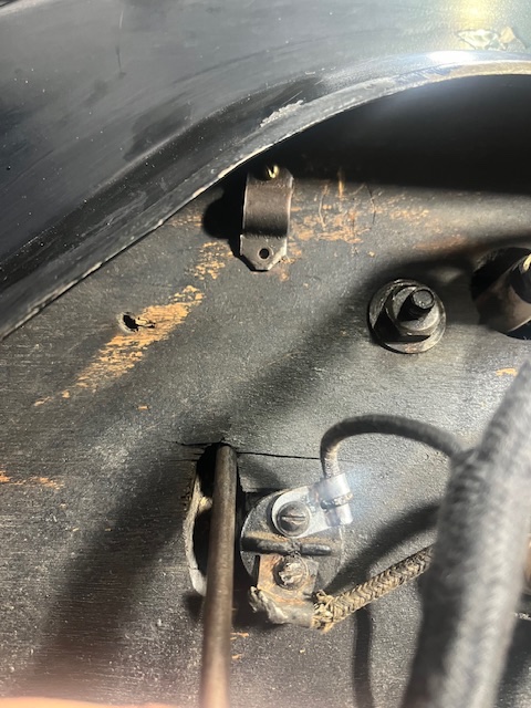 Also note that the headlamp wire is stapled to the firewal (two staples)l. Note the evidence of that on your '16 firewall. The firewall on my unrestored '17 also has the holes from the two headlamp wire staples.