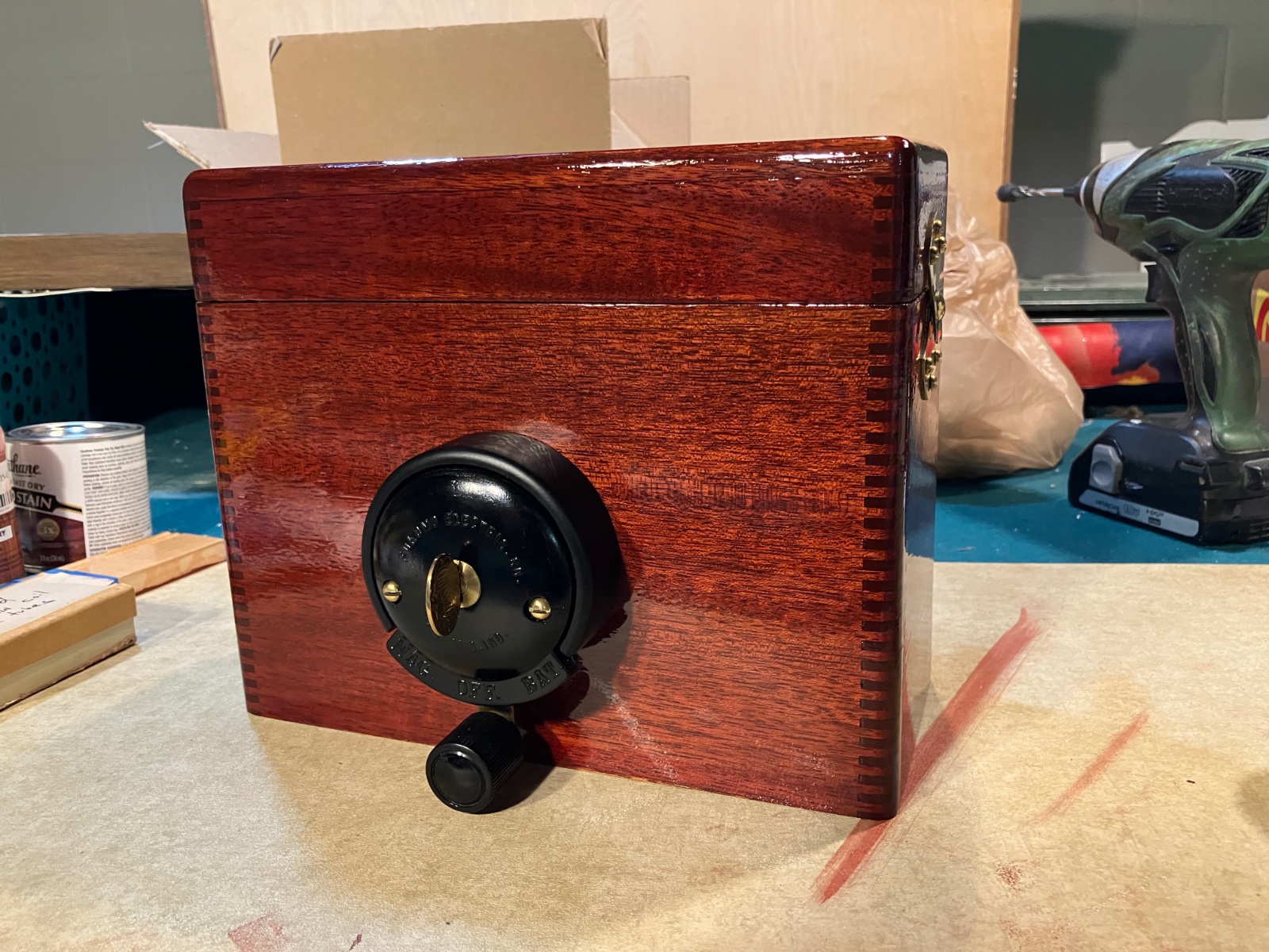 Thought I would share some pictures of the coil box that will be going on the Delivery car. I opted for a Kingston repo box that takes the later coils. I used the LMF Cherry stain and a Cognac to darken it up and give it a little more color. I finished it with 5 coats of Helmsman clear gloss