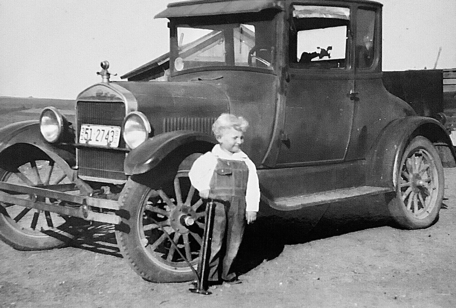 The photo with the little guy pumping air into the tire of a 26 coupe shows a South Dakota, Pennington County 1931 license plate. Assuming they kept the license "current" that photo shows what a five year old 26 coupe looked like "out on the range."