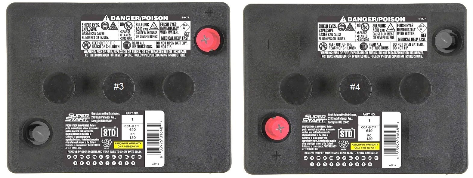 #1 & #2 have the terminals in the same position. If you ignore the labels & rotate the battery 180 degrees you'll see that. --
