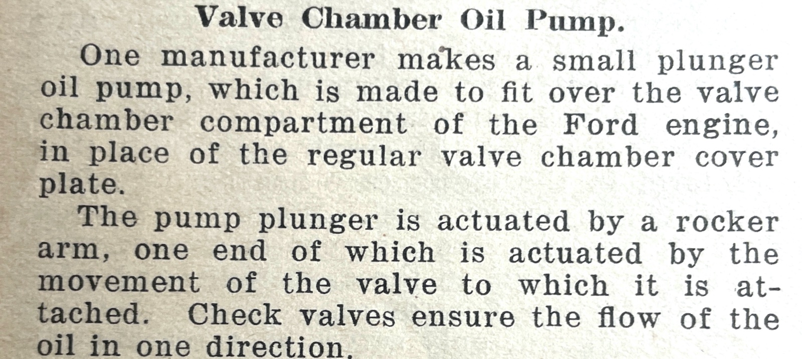 Do you have one shown installed? I never saw nor heard of one like that. I can't think of anything other than the crankcase that might need to be oiled unless it is for an overhead valve conversion.