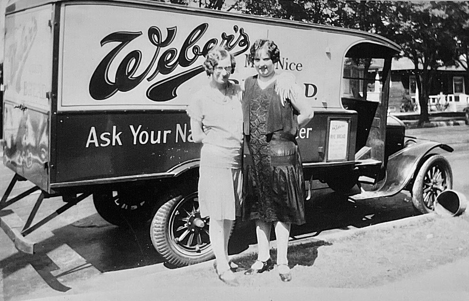 "Here we see the transition from horse to motor. A onetime horse-drawn baker's wagon had its front axle replaced by a fifth wheel so it could be pulled by this circa 1915 Ford Model T coupe. Note the horn on the side of the steering wheel." The photo is attributed to Fruehauf.