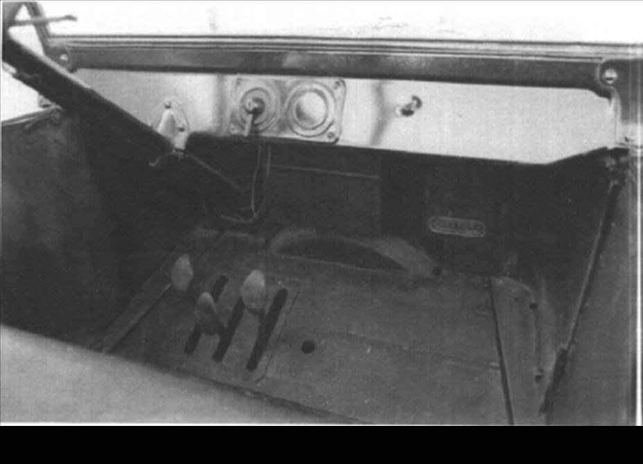 Metal panel now sloped slightly, with lower mounting bolts behind the panel. The width tapers upwards at each side. Non-electric cars used a blanking plate at the ammeter location.