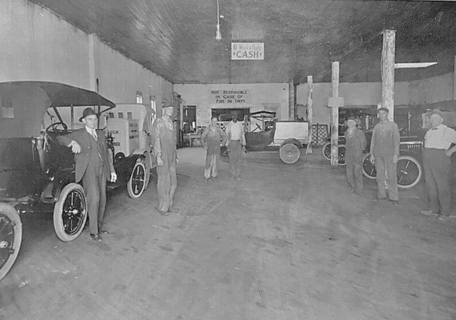 Number two looks like a hard working tough bunch of guys, standing around around a 1913/'14 touring car with Hassler shock absorbers.