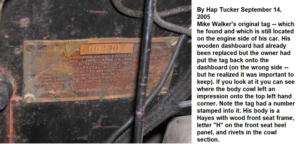 http://www.mtfca.com/encyclo/doc15.htm That is why I thought your car would be an early 1915 -- as your plate still had a number stamped onto it. They continued to use the same plate -- but they just left the area blank -- which is shown with Jim Cook's early 1916 ID plate above. "