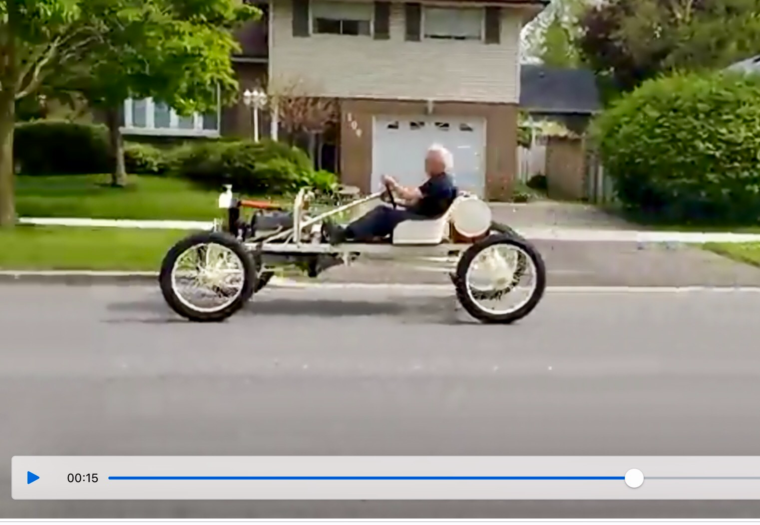Allan Fawcett adjusting the racer as it idles outside the Fawcett shop. Click on the link for the Dropbox video (1 min 13 sec):